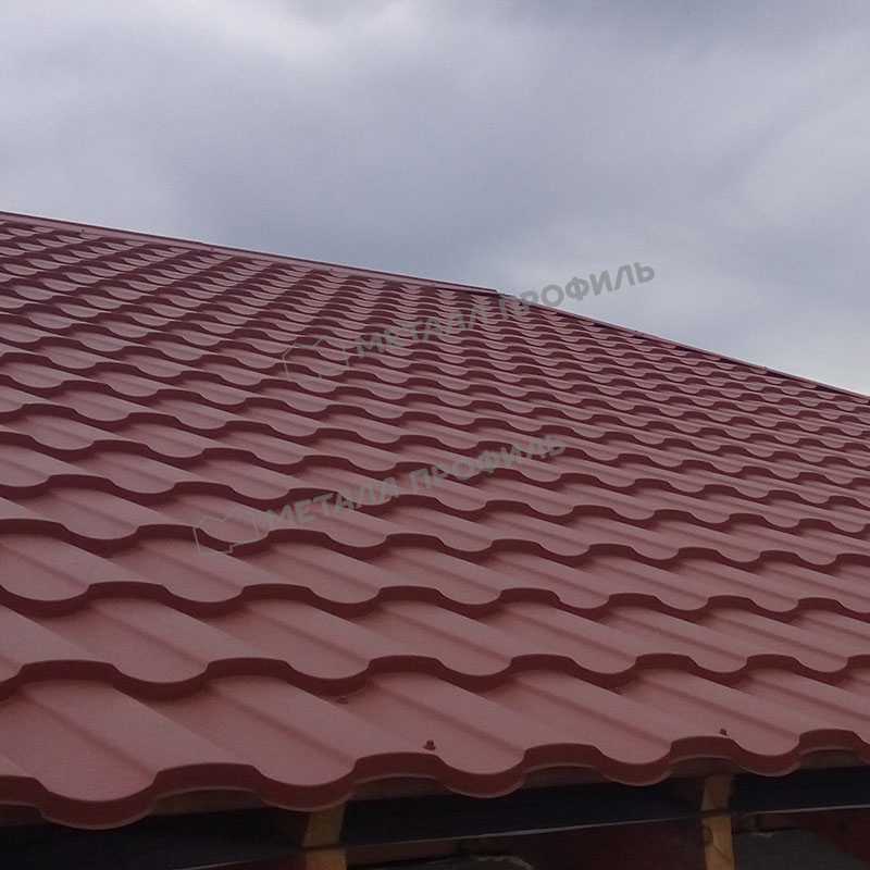 • Сталь толщиной 0.5 мм (с учётом металла, оцинковки и декоративно-защитного покрытия) защищает кровлю от физических воздействий.