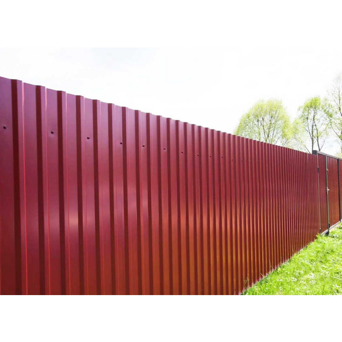 Профилированный лист МП-20x1100-A (ПЭ-01-3005-0,65) — популярный материал в Сланцах для обустройства забора. Изначально он представляет собой стальной оцинкованный лист с покрытием. Толщина стальной основы с оцинковкой и полимерным покрытием составляет 0.65 мм.После проката на специальном оборудовании сталь принимает волнообразный вид. Несущая способность такого листа гораздо выше плоского.