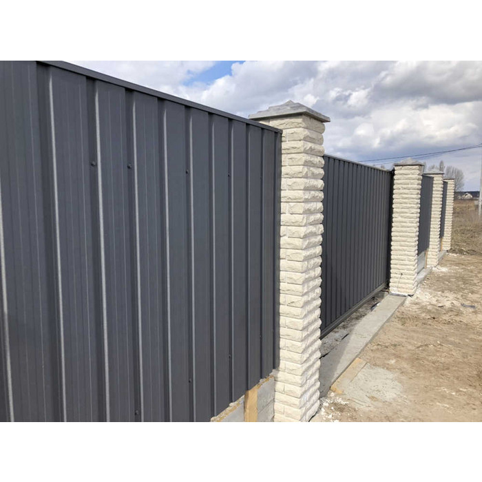 С-8 – самый низкий и экономичный профиль. Его несущая способность относительно невелика, в связи с этим такой профиль не используется в сооружениях, где необходима повышенная прочность. Как правило, С-8 применяют в качестве стенового облицовочного материала, а также для возведения заборов и подвесных потолков. Характеризуясь наиболее низким профилем – всего 8 мм – одновременно он имеет самую большую полезную ширину – 1150 мм. В основном на производство С-8 берётся металлопрокат толщиной от 0,4 до 0,7 мм. Это подходящие толщины для отделки фасадов или устройства заборов в климатических зонах с низкой ветровой нагрузкой. Для временных конструкций (бытовок, сараев, туалетов, времянок) в Компании Металл Профиль вы можете купить оцинкованный профлист толщиной 0,35 и менее мм, чтобы не переплачивать без необходимости.