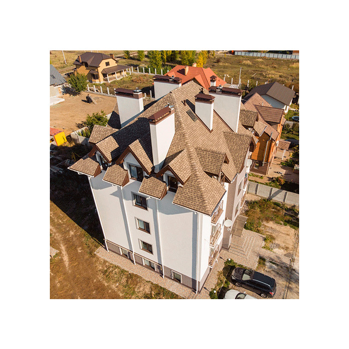 Многослойная черепица ТЕХНОНИКОЛЬ SHINGLAS коллекция КАНТРИ – это штучный битумосодержащий кровельный двухслойный материал. Изготавливается нарезанием листов из рулонного материала, получаемого путем пропитки и покрытия стекловолокнистой основы битумным вяжущим, с последующим нанесением различных видов защитных покрытий и склейкой двух листов разной формы. Гарантийный срок службы – 50 лет.
