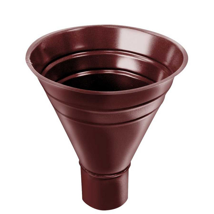 Воронка водосборная предназначена для сбора воды в том случае, когда сток не организован посредством желоба, а осуществляется по ендовам (сложные формы крыш).